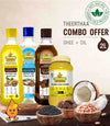 Begin your journey to healthy cooking with the Theerthaa Wellness Starter Pack. This curated set brings together Groundnut Oil, Karupatti Sesame Oil, Coconut Oil, and Pure Ghee – four traditional essentials trusted for everyday use.